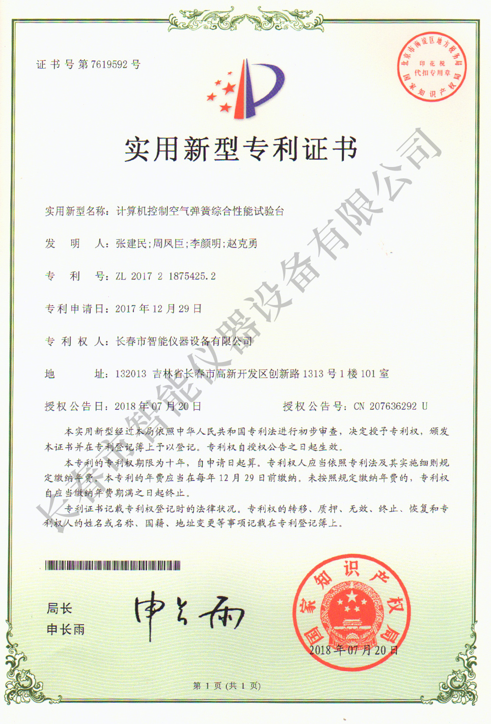 當(dāng)前位置:首頁(yè)  >  榮譽(yù)資質(zhì)  >  空氣彈簧實(shí)用新型專利ZL 2017 2 1875425.2